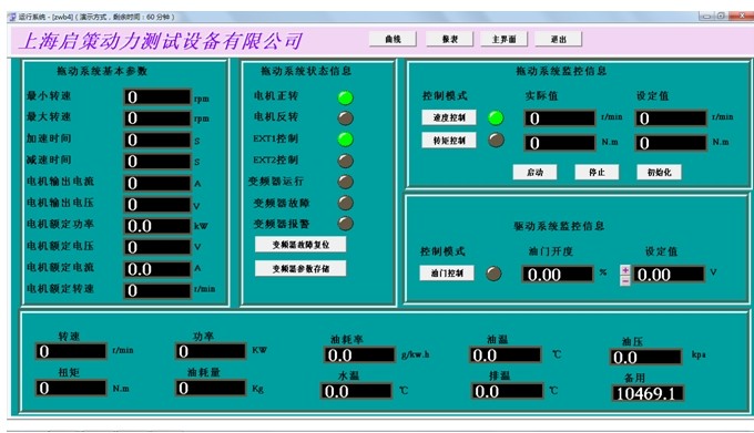 控制系統(tǒng)與測功機(jī)負(fù)載控制閥和發(fā)動機(jī)油門執(zhí)行器相連,實(shí)現(xiàn)恒轉(zhuǎn)速、恒位置的控制?墒謩硬僮。可設(shè)定報(bào)警,并將試驗(yàn)數(shù)據(jù)和結(jié)果儲存、打印。