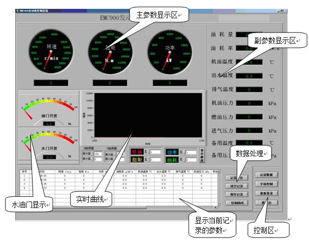 1、測試參數(shù):轉(zhuǎn)速、扭矩、功率、排氣溫度、機(jī)油溫度、機(jī)油壓力、出水溫度、油耗率